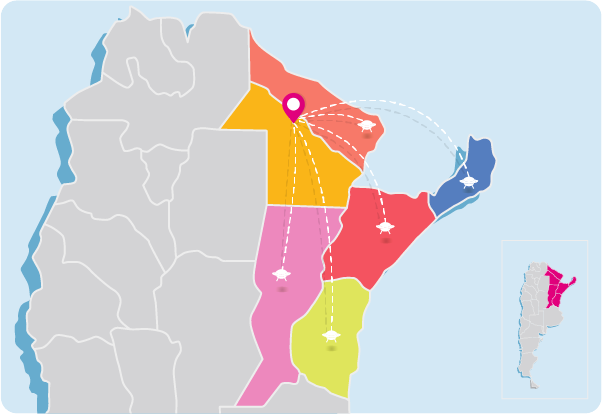 Nuestras zonas y puntos de ventas en los que estamos. Chaco, Corrientes, Formosa, Misiones, Entre Rios, Santa Fe.