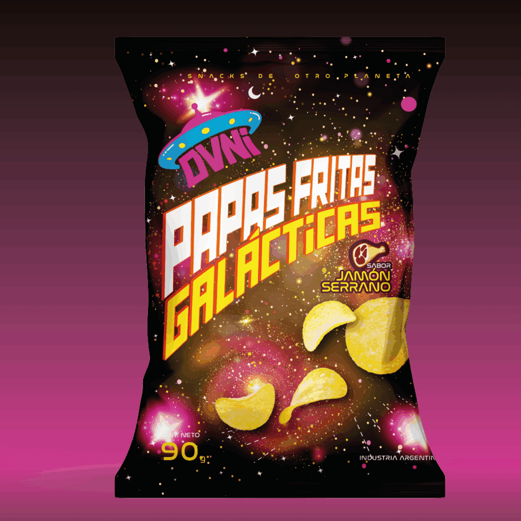 Las PAPAS GALÁCTICAS de OVNI Snacks. Con el corte perfecto, un sabor intenso y un packaging digno de una nave espacial.